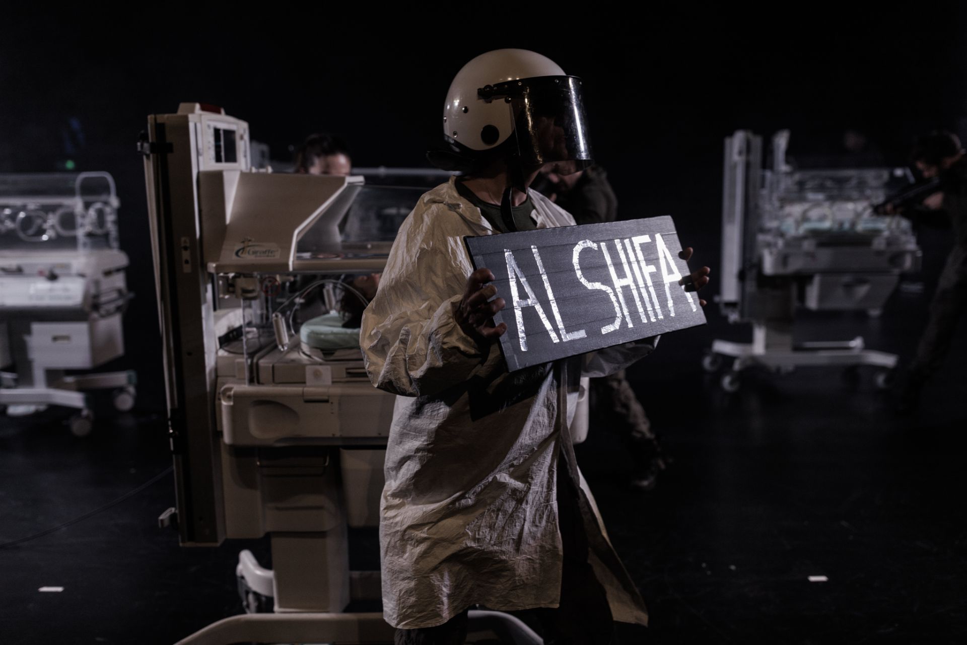 „Ovde nema okolišanja. Nema vela metafore. U desetom minutu predstave već neko drži kartonski znak na kojem piše Al-Šifa, najveća bolnica u Pojasu Gaze. Glumci nose vojnu opremu sa slovima IDF na leđima. Predstava je potaknuta vestima, objavljenim na početku sukoba, da prevremeno rođene bebe umiru nakon što su im inkubatori prestali raditi kada je u bolnici nestala struja, što je predstavljeno kao krajnji front.” – Nataša Tripni